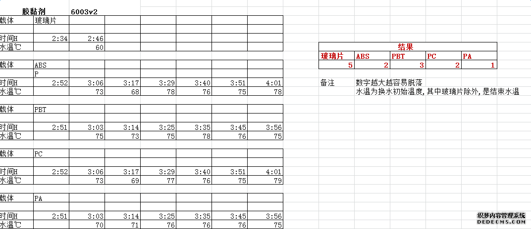 下圖為我司做的測試方式:在70-80℃水浴中測試ABS,PBT,PC,PA材料做了測試。最終得出玻璃的情況。