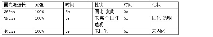 從表二可以看出在395nm波段下,時(shí)間越長(cháng)并沒(méi)有使UV膠層出現黃變現象,而在365nm情況出現了黃變.說(shuō)明能量不是造成黃變的主要原因.即證明了表一得出的第二個(gè)結論是準確的,不同波段才是造成膠層黃變的主要原因.