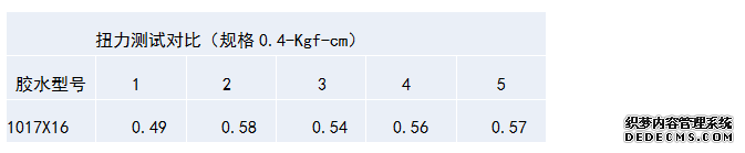 粘接強度適中,比客戶(hù)要求的0.4Kgf的扭力要求,客戶(hù)測試數據如下表: