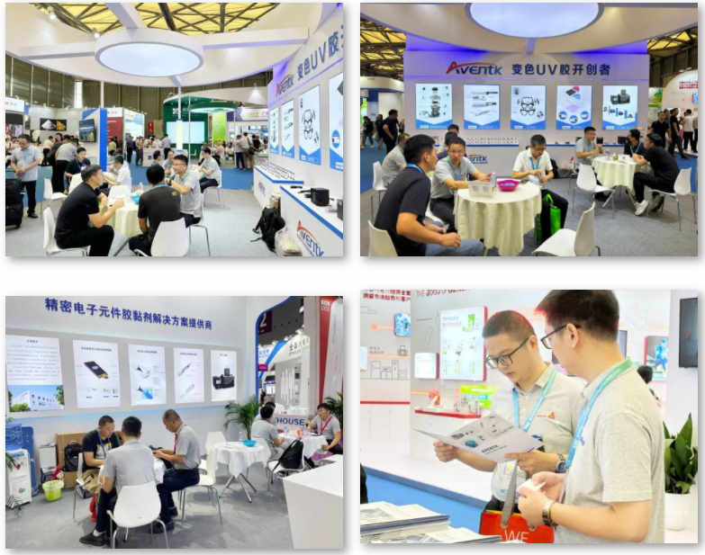 昀通科技(AVENTK)此次攜UV變色膠、UV變色標簽、攝像模組UV膠、光通訊膠水、AR膠水及UVLED固化設備等展品亮相兩場(chǎng)展會(huì ),在為期三天的展會(huì )中,接待了成百上千位國內外客戶(hù)。