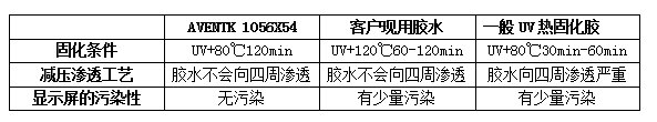 上圖為AVENTK 1056X54 UV加熱雙重固化膠與客戶(hù)現有膠水對比情況,通過(guò)測試,AVENTK 1056X54 UV加熱雙重固化膠耐高溫高濕、耐高溫通過(guò),可以滿(mǎn)足客戶(hù)要求。