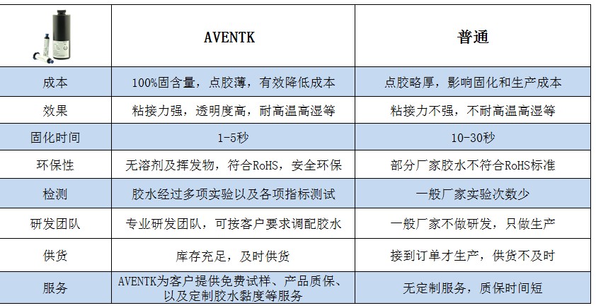 AVENTK UV膠水VS普通UV膠水